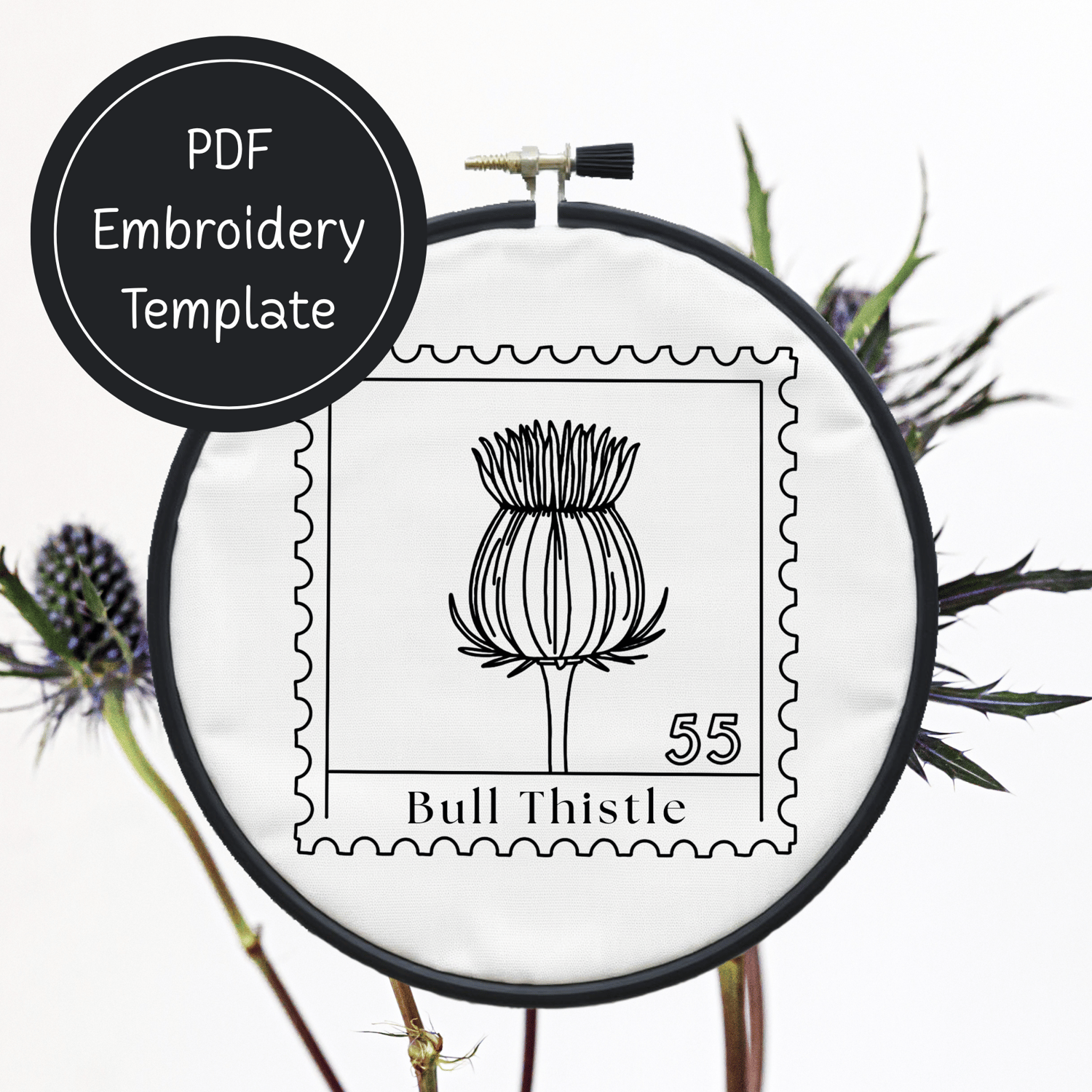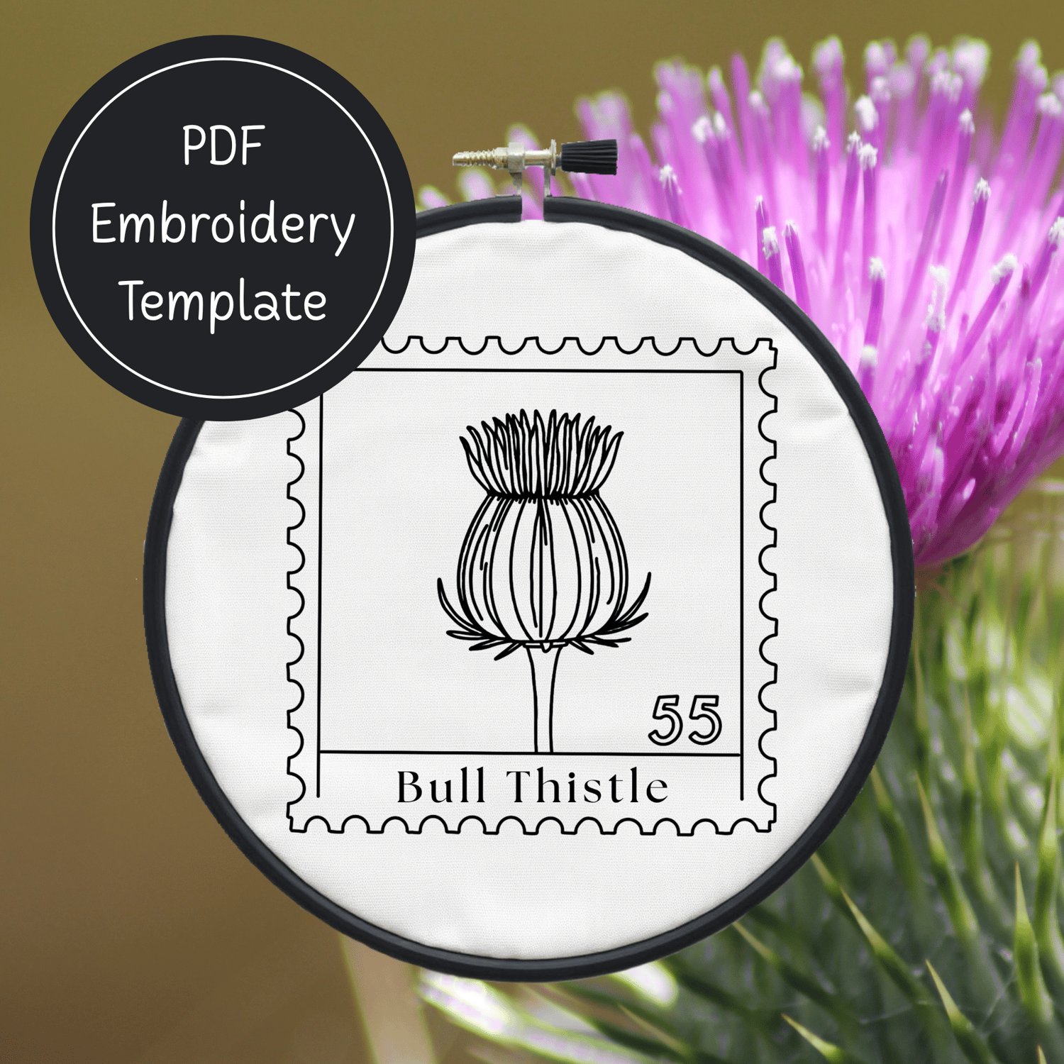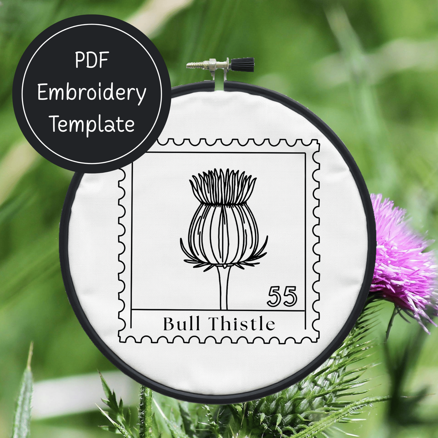 Bull Thistle Postage Stamp Hand Embroidery Pattern DIY Wildflower Embroidery