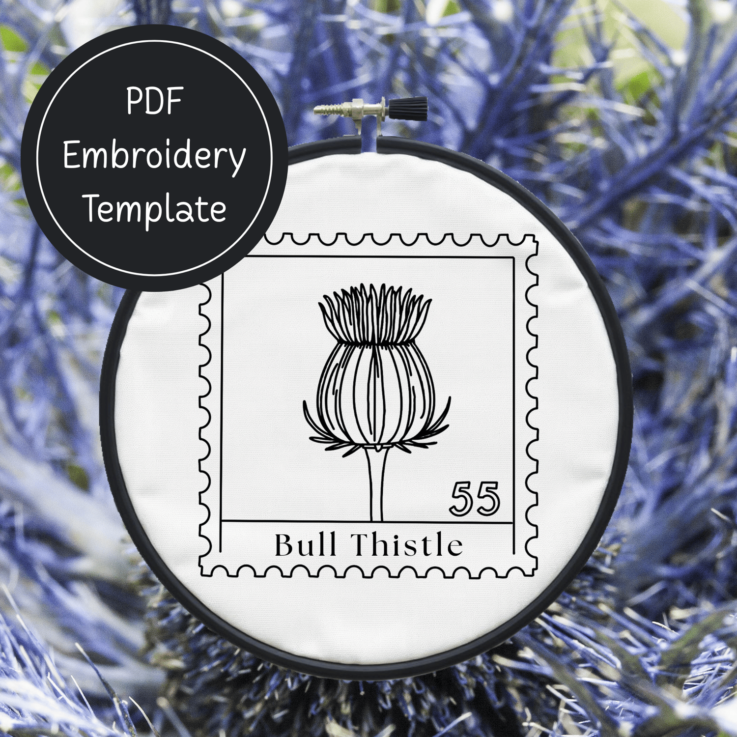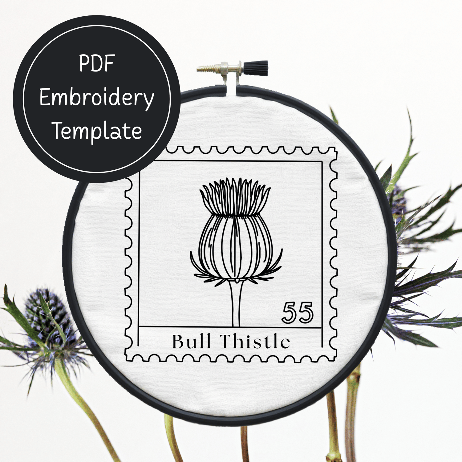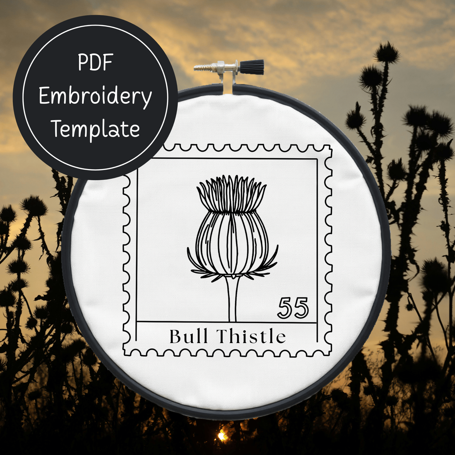 Bull Thistle Postage Stamp Hand Embroidery Pattern DIY Wildflower Embroidery