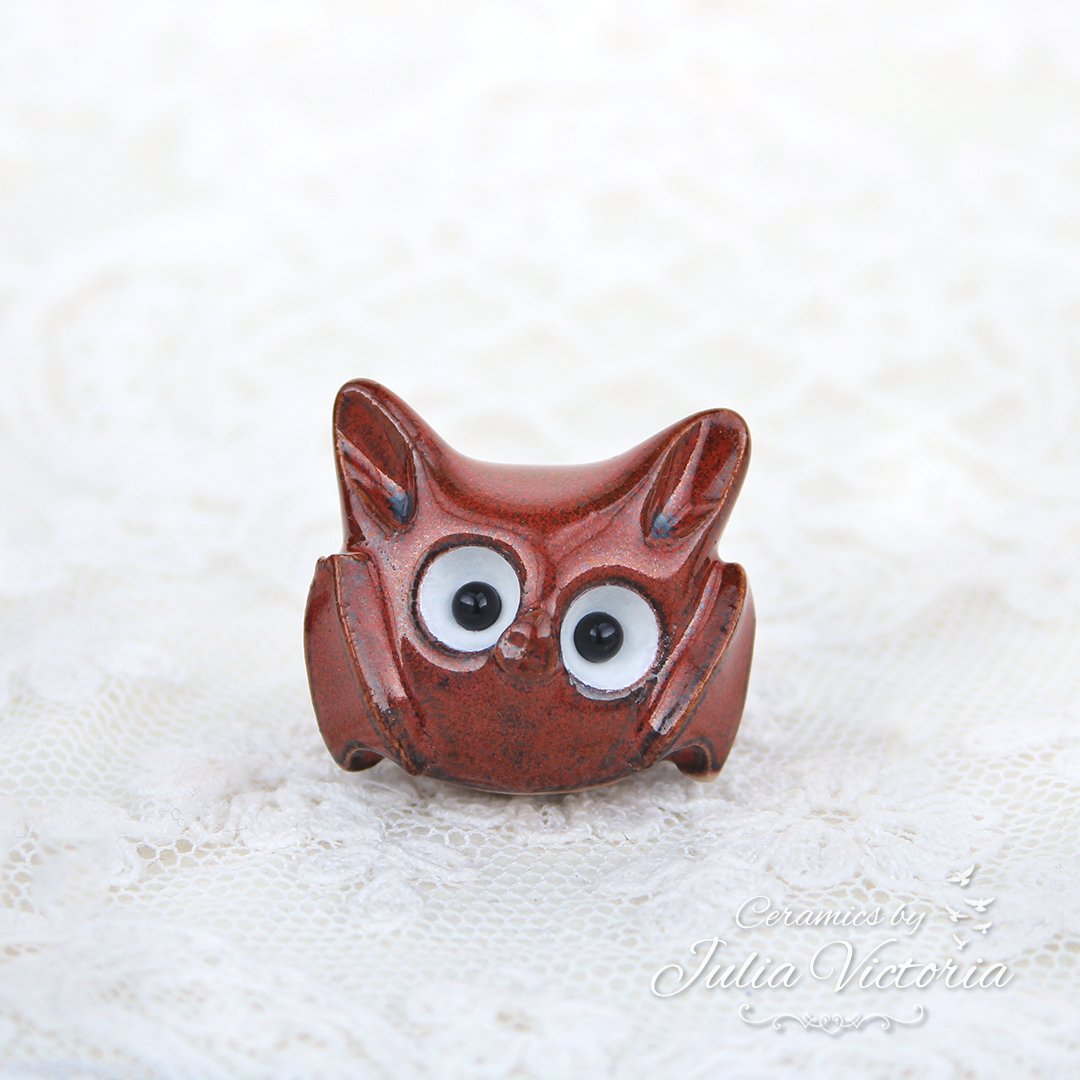 This cute little bat is looking for a new place to sleep. It is hand-sculpted in ceramics, glazed and painted by me