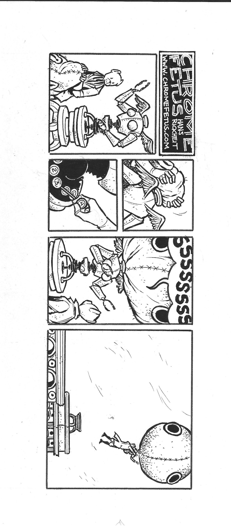 (NOTE: Many pages from Chrome Fetus Studios are composites of different drawings on multiple bits of paper and flotsam - sometimes crudely cobbled together with glue or tape. You may also find pencil marks, scribbled notes and graphite thumbprints. Consider these features as a means of certifying the genuineness of the artwork!)
