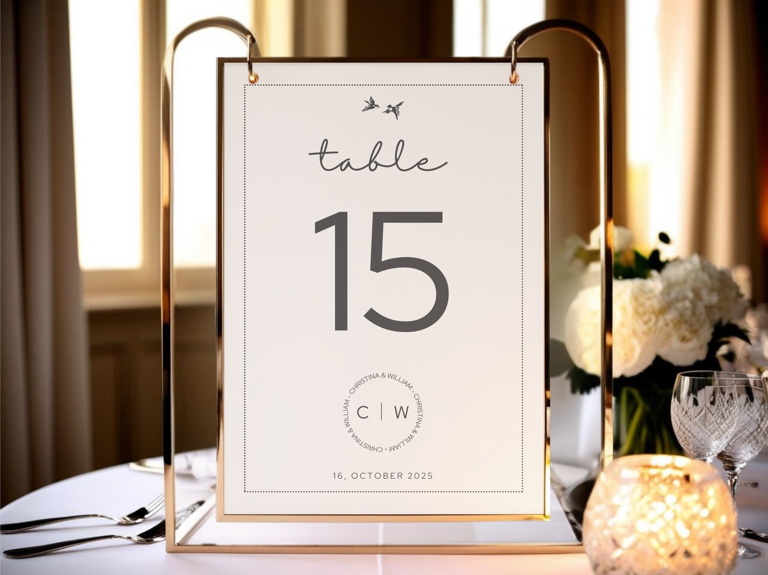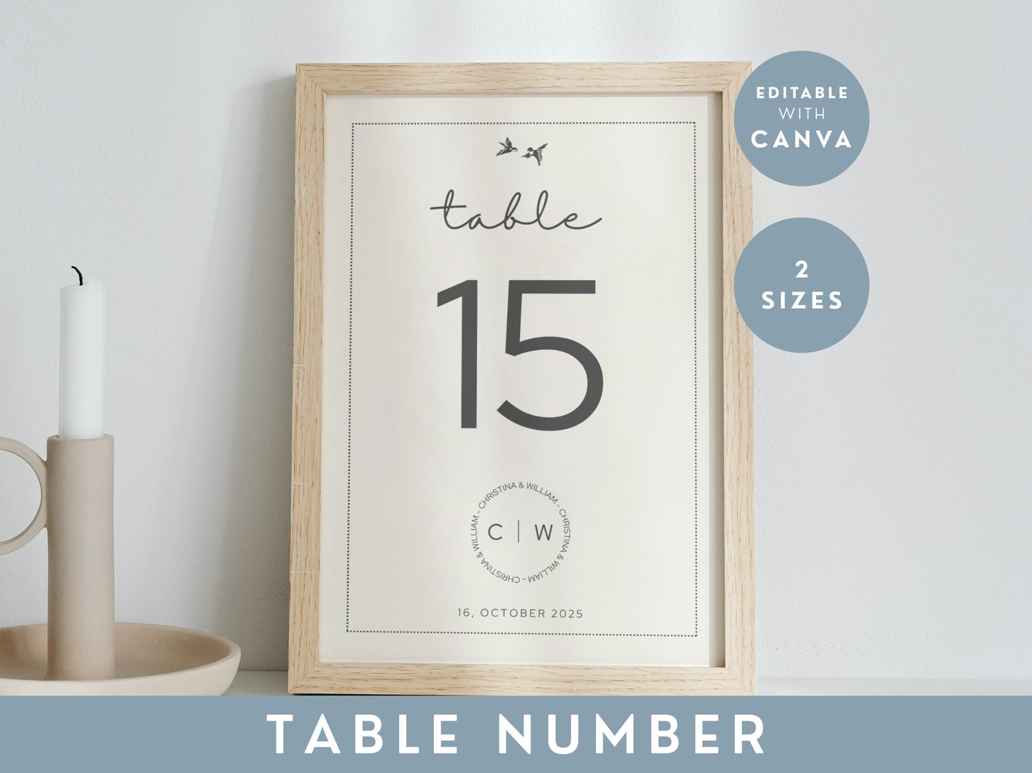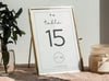 This printable table number card features a charming lovebird theme, perfect for a wedding reception dinner setting. The editable DIY design makes it easy to customize for your special day’s table arrangement.