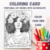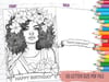 Printable Greyscale Coloring Birthday Card for Her Featuring Beautiful Girl