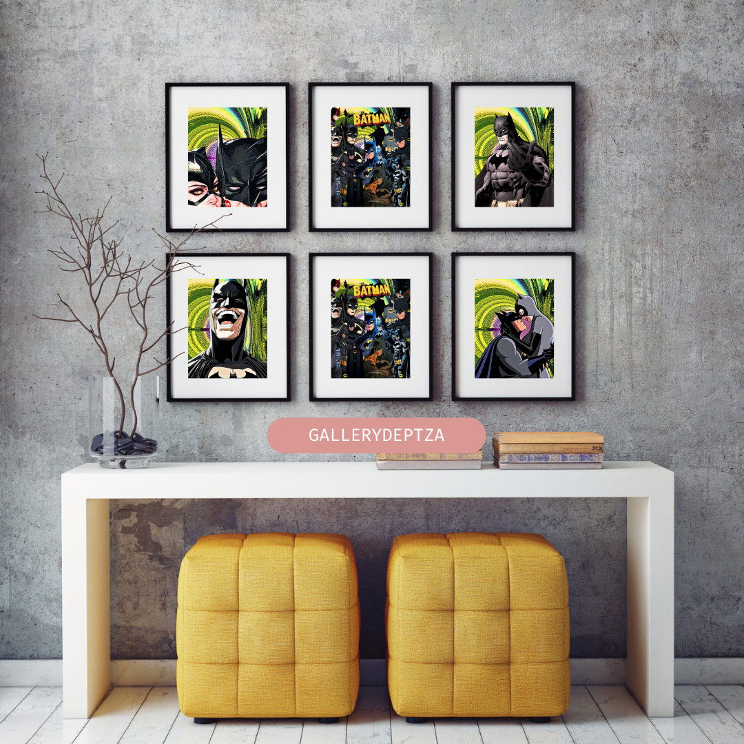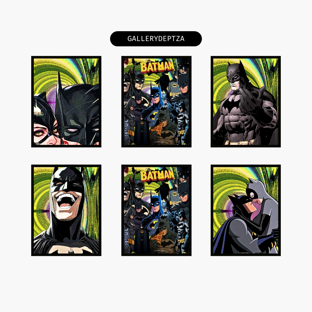 Batman & Catwoman Trippy Art Bundle (6 Prints) | Psychedelic Superhero Wall Art | Digital Download | A4 & A3 PDF