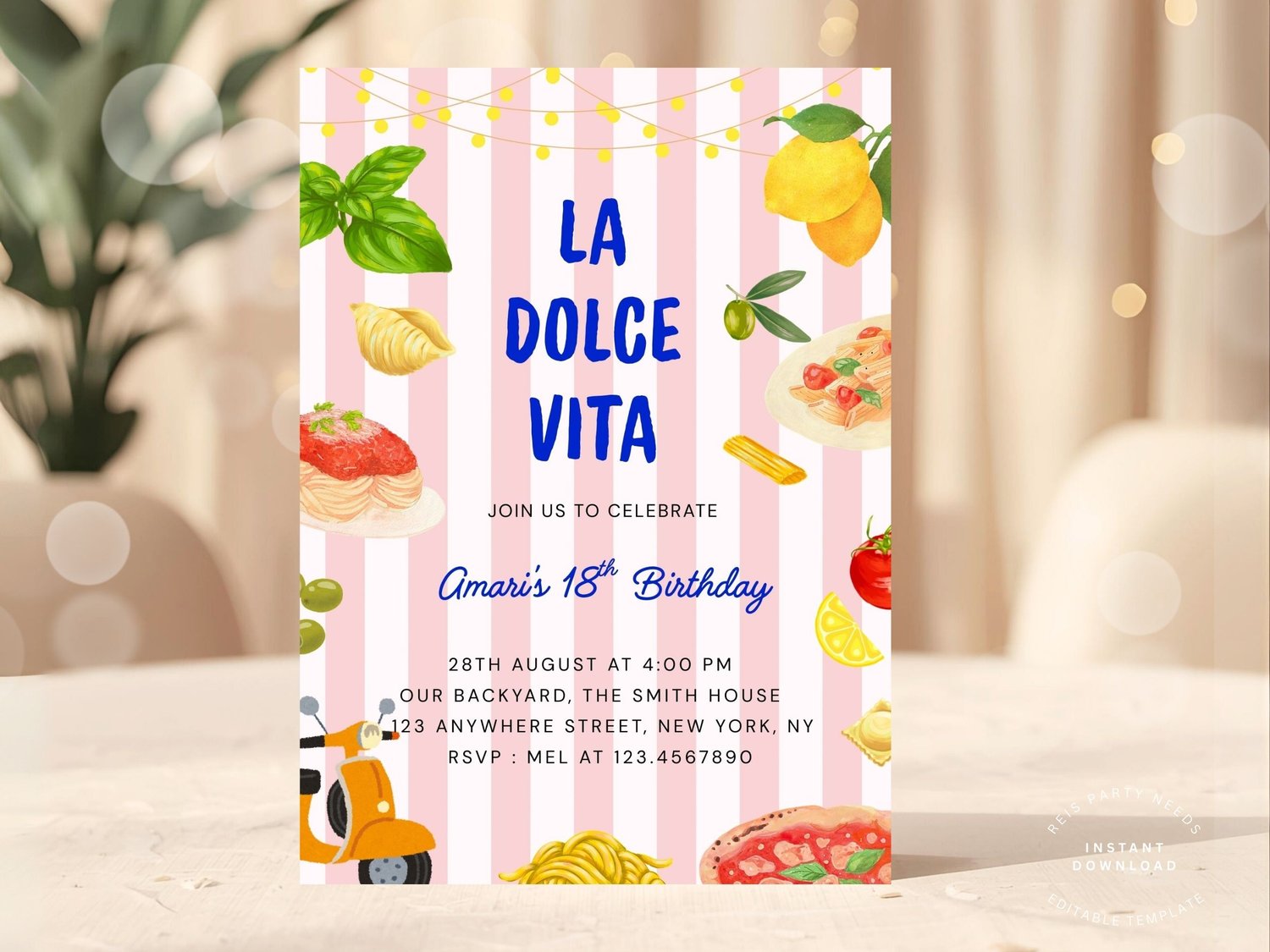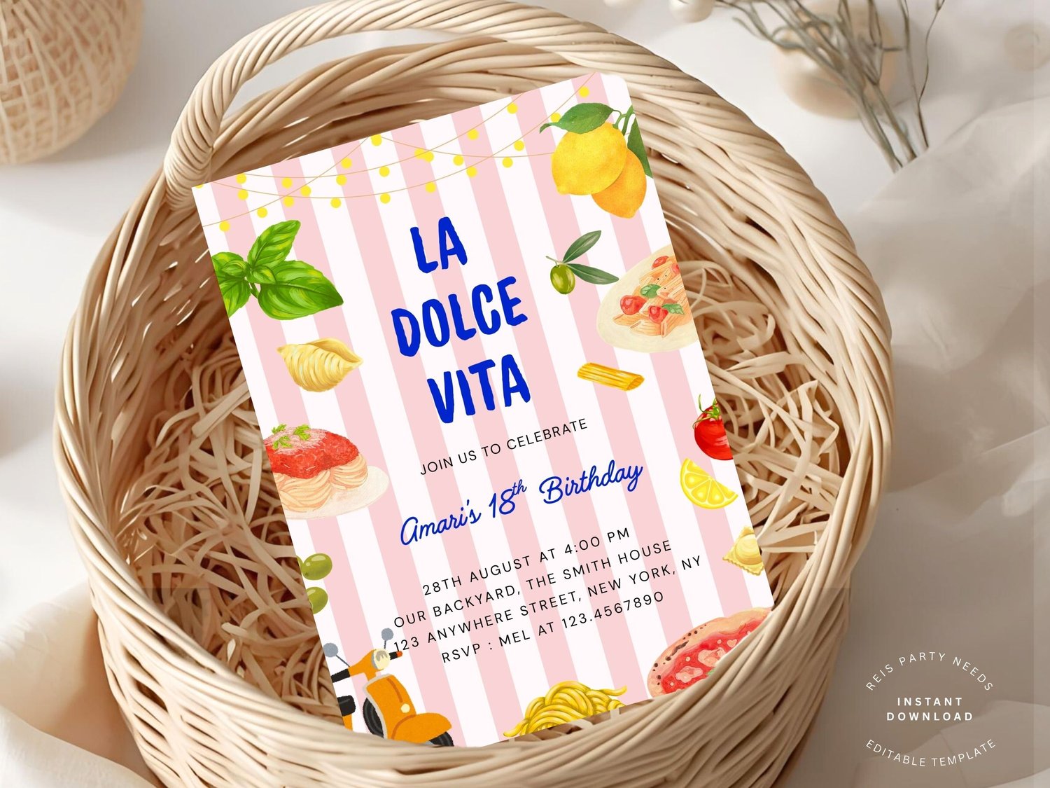 La Dolce Vita Birthday Invitation, Italian Summer Party Invite, Aesthetic Editable Amalfi Coast Theme, Ciao Bella, Pasta and Wine Party