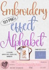 Embroidery effect letters. 189 PNGs files. 3 colours; upper and lower case, numbers and ‘&’. Embossed effect, in pink, blue and neutral colours. 3 full sets.