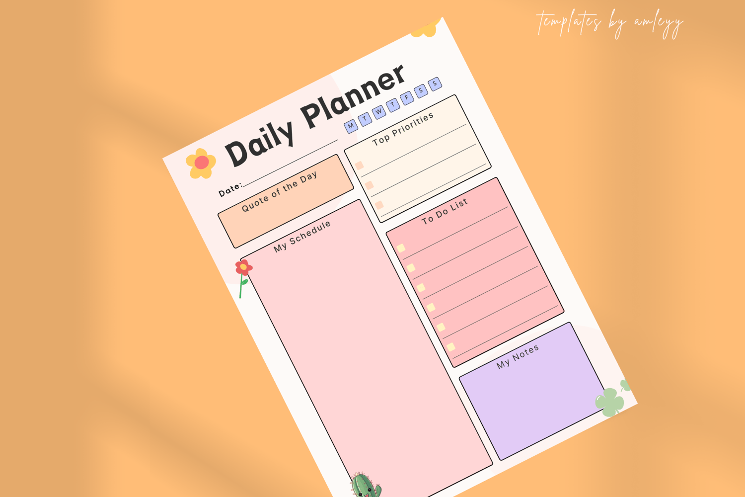 Cute Aesthetic Daily Planner Template