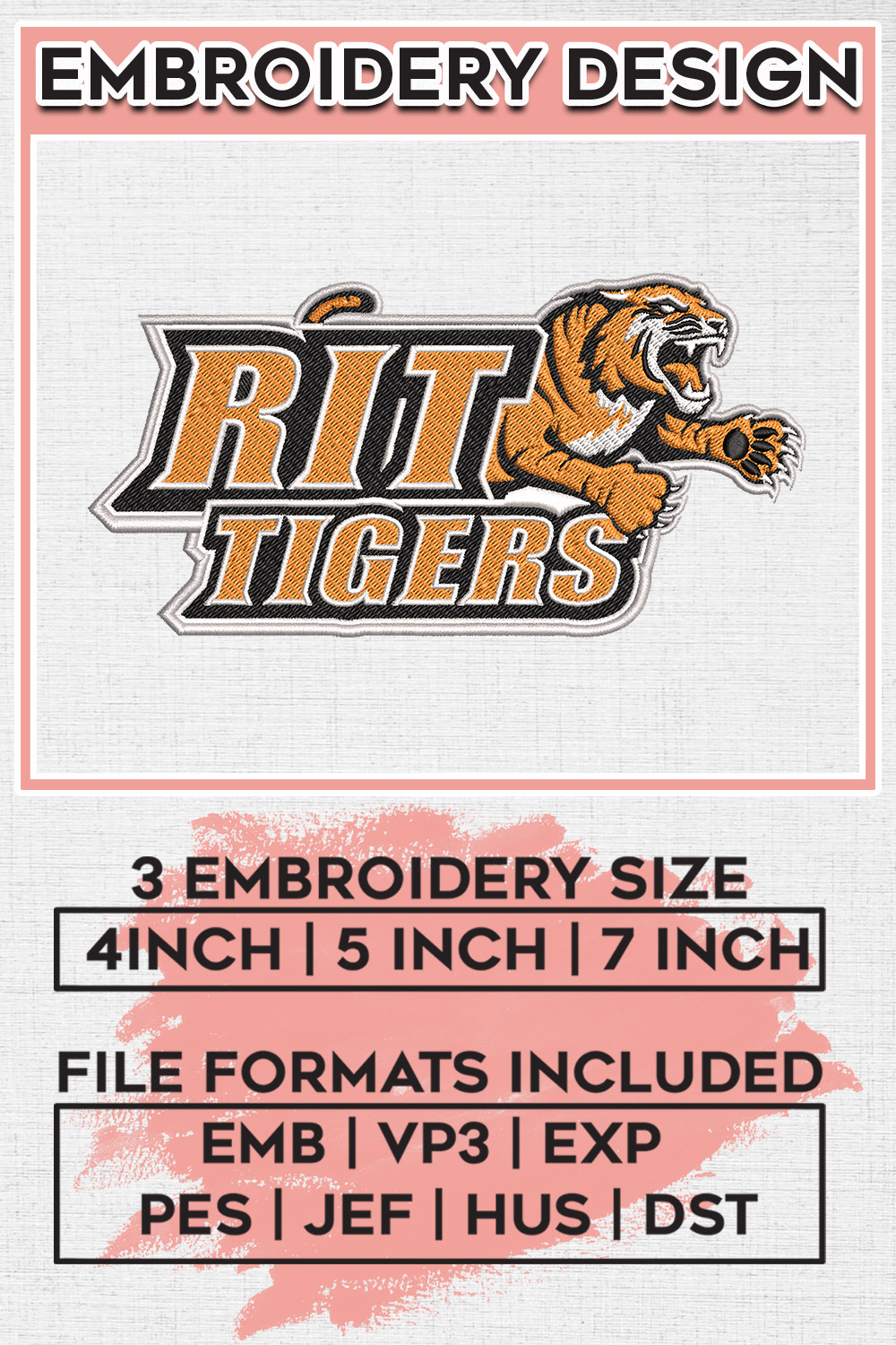 RIT Tigers College Football Team Logo Embroidery Designs, NCAA RIT Tigers Machine Embroidery Files, NCAA Logo embroidery designs, Ncaa RIT Logo, Digital Download