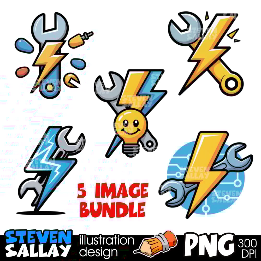 Electrician Cartoon Clipart Logo Elements Bundle. PNG Digital Download