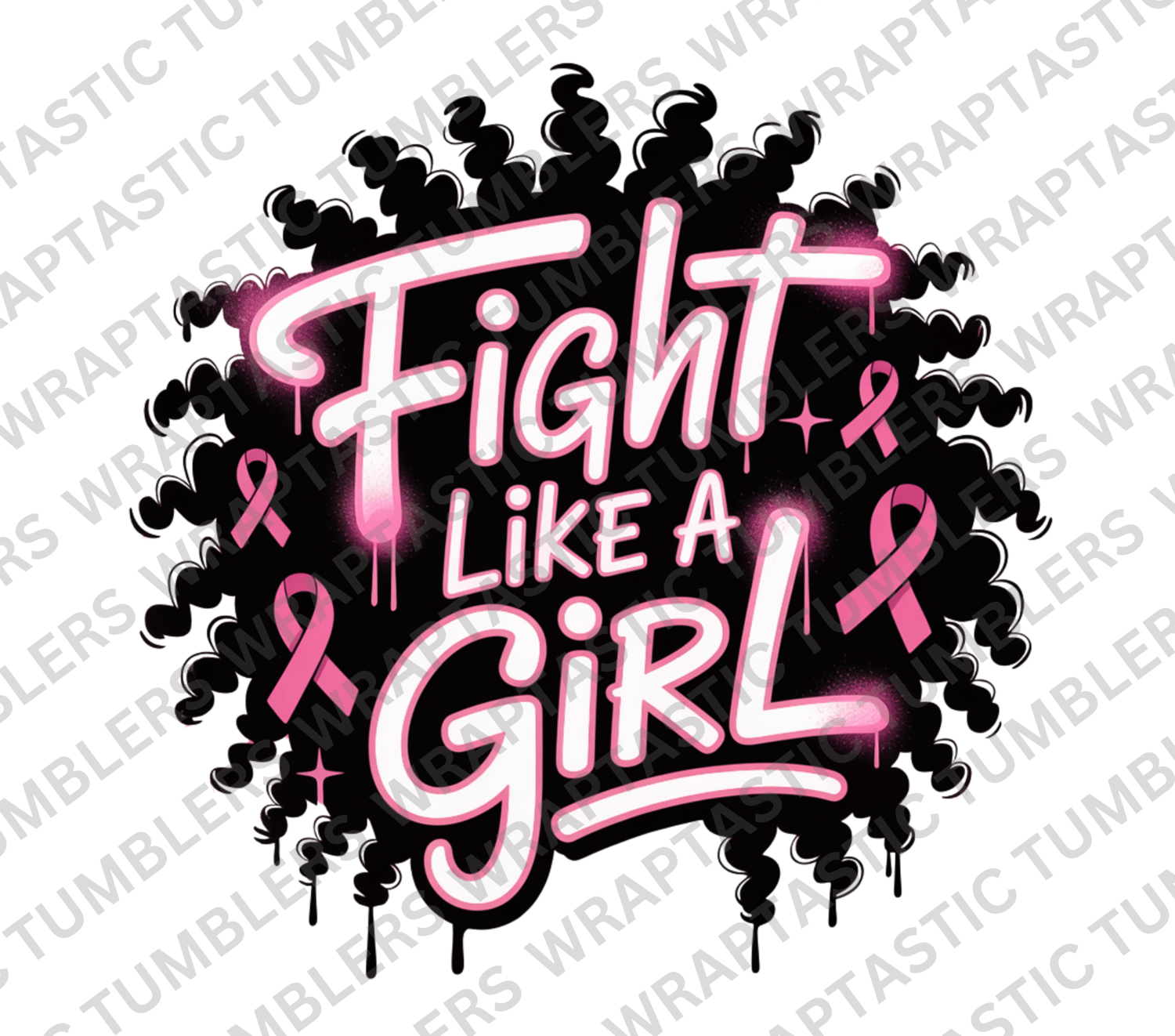 Fight Like a Girl PNG Breast Cancer Awareness Pink Ribbon Afro Sparkle Sublimation Digital Download Empowerment Design Printable Clipart