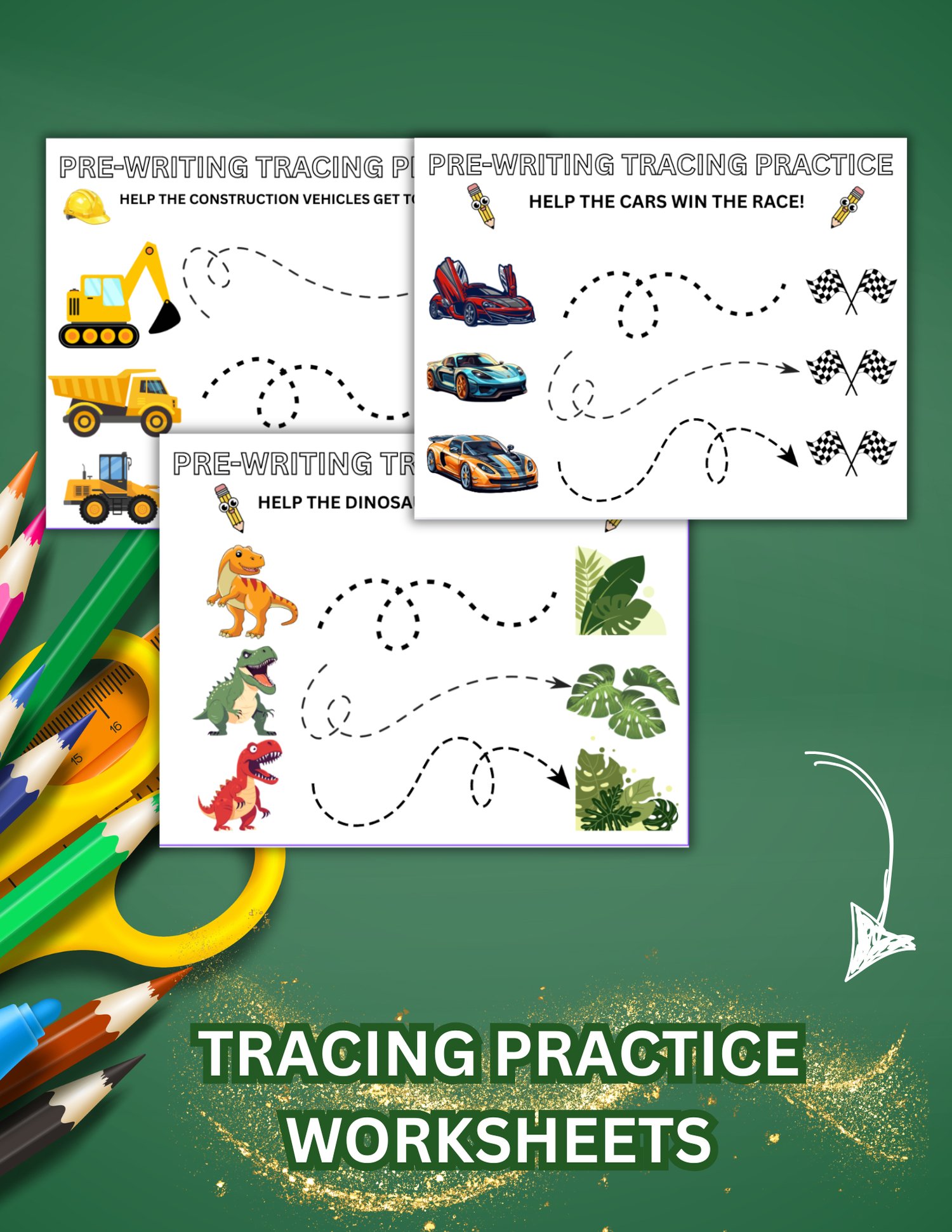 PRE-WRITING TRACING PRACTICE WORKSHEETS BUNDLE