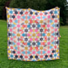 Pieced using traditional English paper pieced patchwork, this quilt is a celebration of stars that can be arranged to form geometric patterns, including secondary and tertiary patterns.