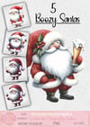 Boozy Santa. 5 Santas with red, white, rose wine, beer, cocktail. Digital download. High quality PNGs. Sublimation, print. Instant download for sublimation and print. Ideal for greetings cards, Christmas ornaments, clothing, cushions, prints.
