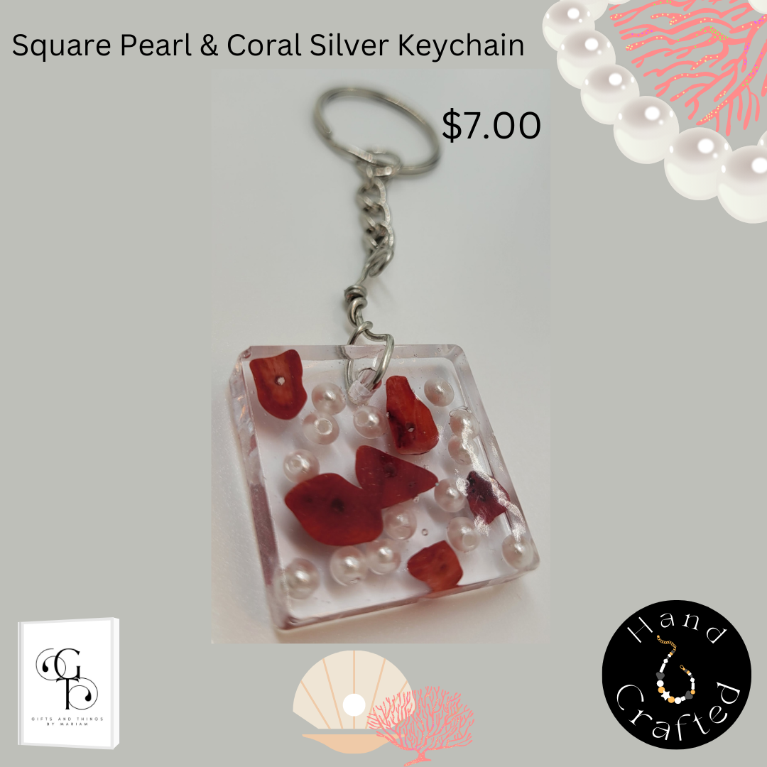 Introducing: Square Pearl & Coral Silver Keychain