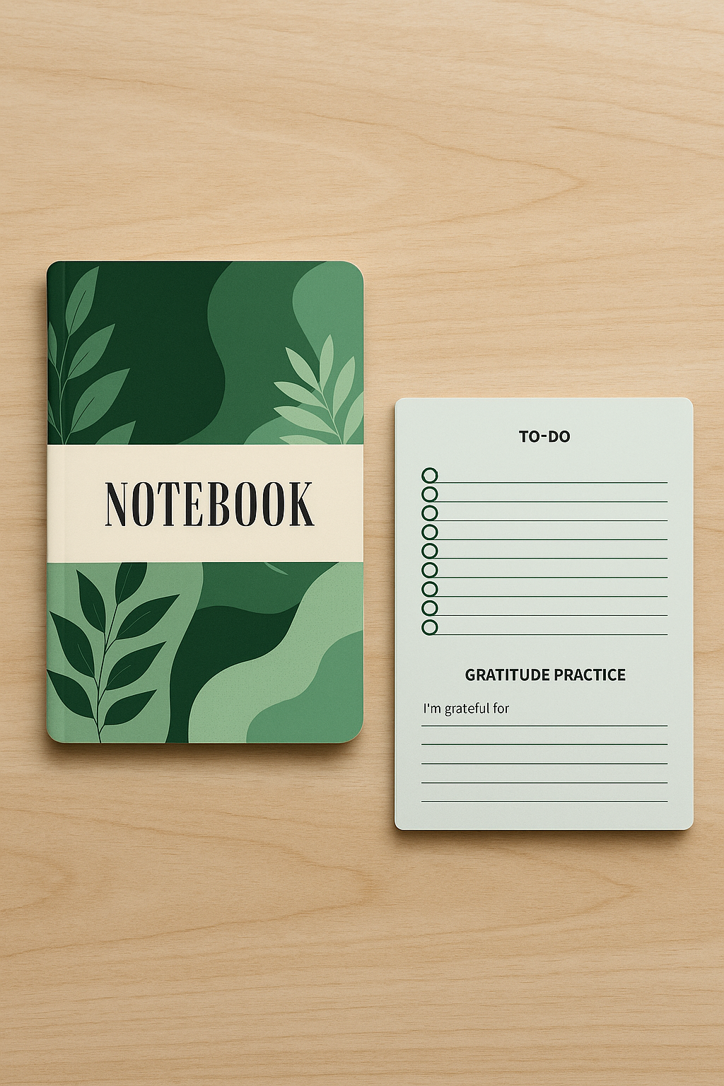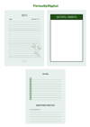 This beautifully designed notebook features a calming mint and dark green botanical cover, perfect for everyday use. Inside, you’ll find a simple and flexible layout with lined pages for notes, a blank page for sketching or doodling, and dedicated to-do and gratitude pages to help keep you organized and mindful.