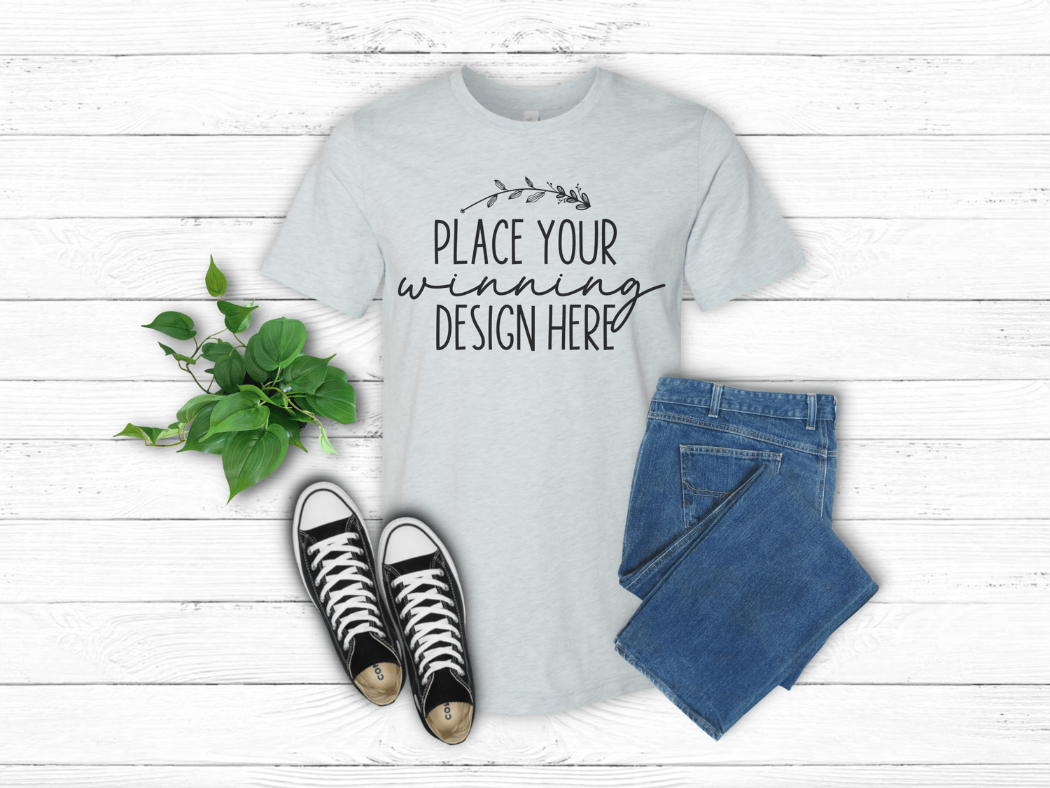 heather prism ice blue shirt mockup bella canvas 3001 t-shirt blue mock up minimalist 3001 blank mockups flat lay 3001 mockups jpg download