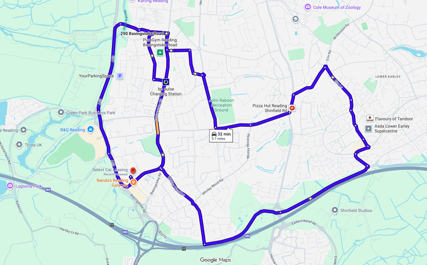 Practise real driving test routes in Reading before your exam – open directly in Google Maps
