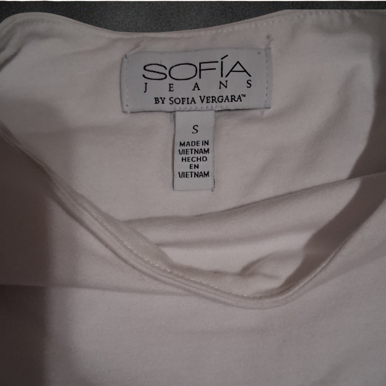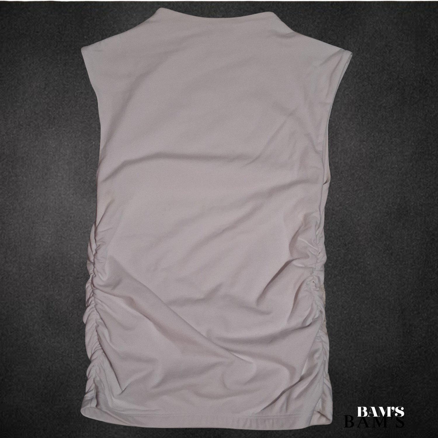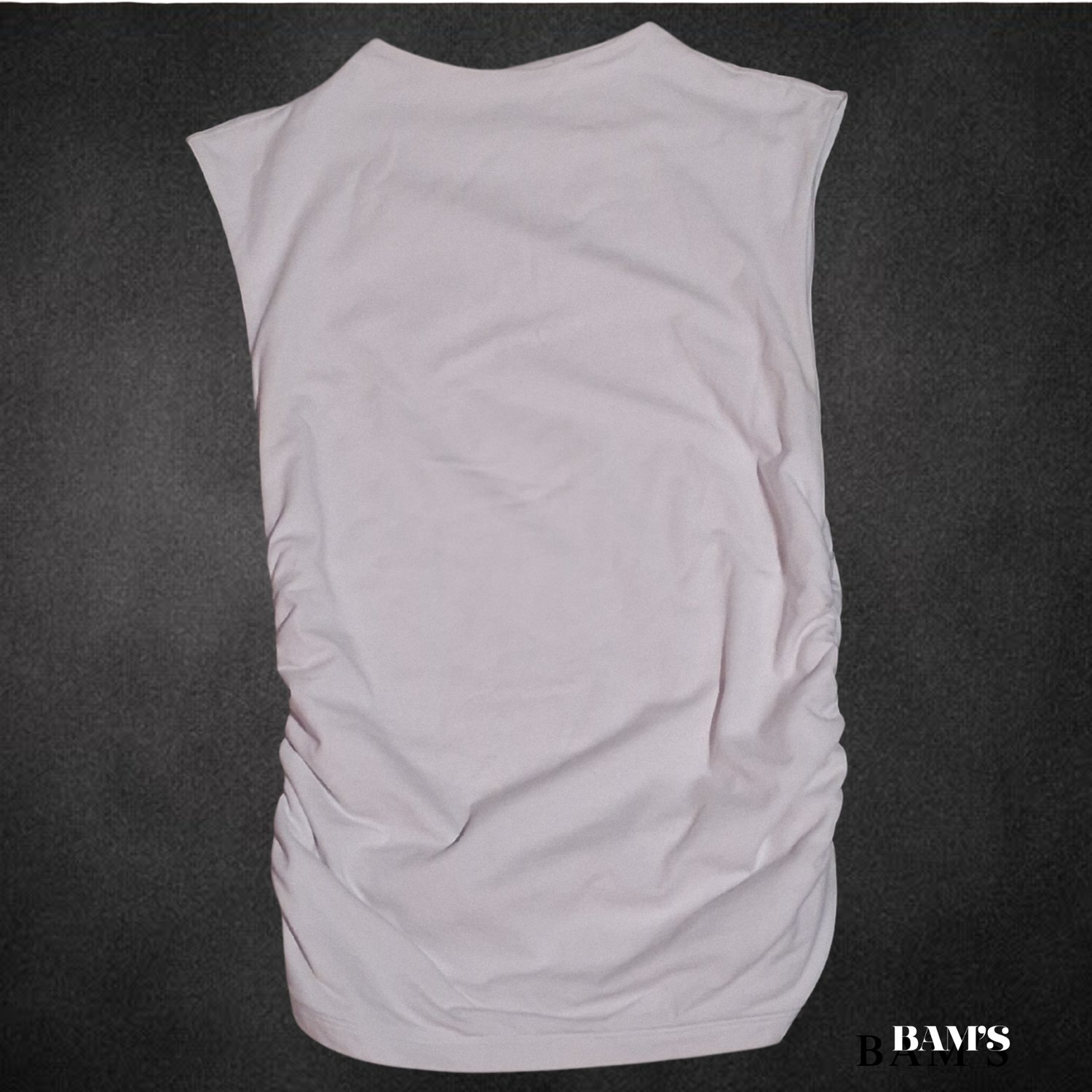Chic and flattering SOFÍA Jeans by Sofia Vergara sleeveless top in a soft blush tone. Features beautiful side ruching that shapes the waist and gives a smooth, sculpted fit. Perfect for layering, dressing up, or pairing with denim for an effortless look.
