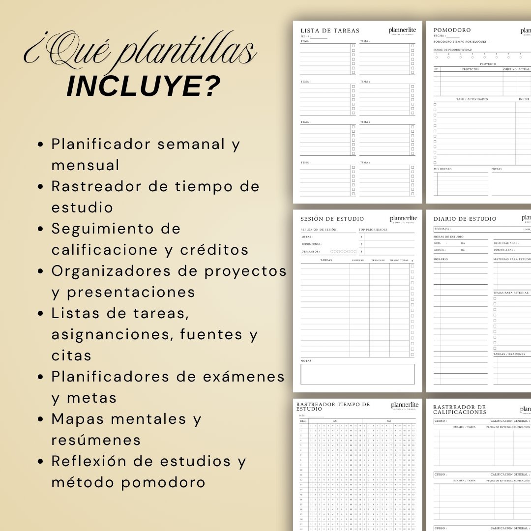 Este pack exclusivo reúne más de 40 plantillas, diseñadas para ayudarte a planificar, priorizar y alcanzar tus metas académicas sin estrés.