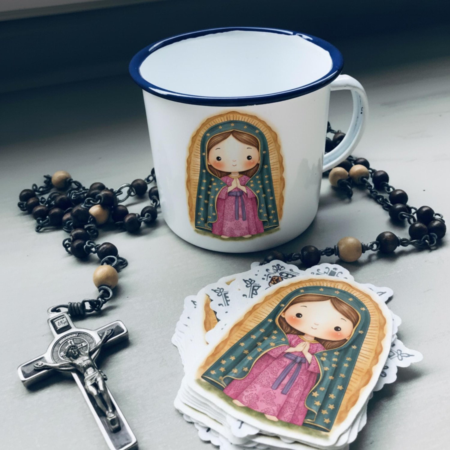 ✅ Colors inspired by traditional imagery, with a modern lively twist to suit Mexican devotional art.
