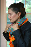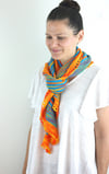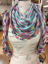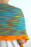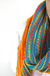 This was made with 400 yards of CC (Sonne) and 300 yards of MC (Türkis) from Wollmeise Pure skeins but you can certainly continue knitting to make it longer.