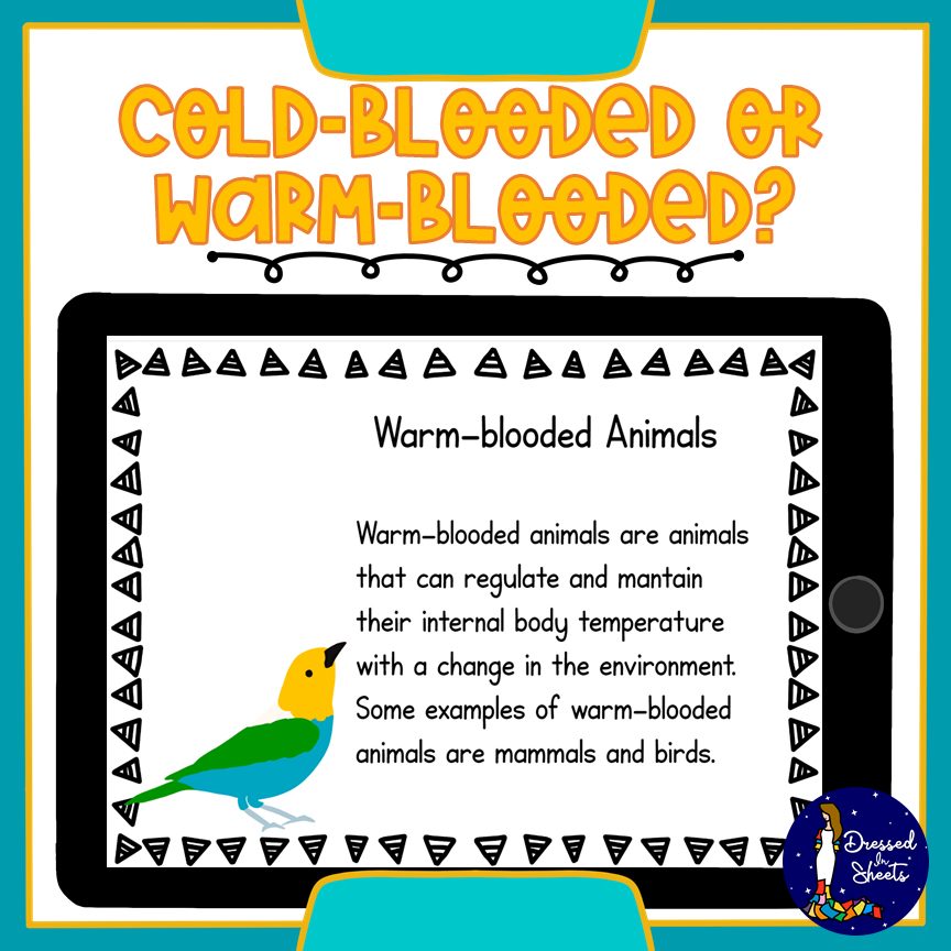 Don't know? Well, don't you worry because this BOOM deck will have you quickly knowing the difference between the two. Includes a quiz in which students will see different animals and decide whether they are warm-blooded or cold-blooded.
