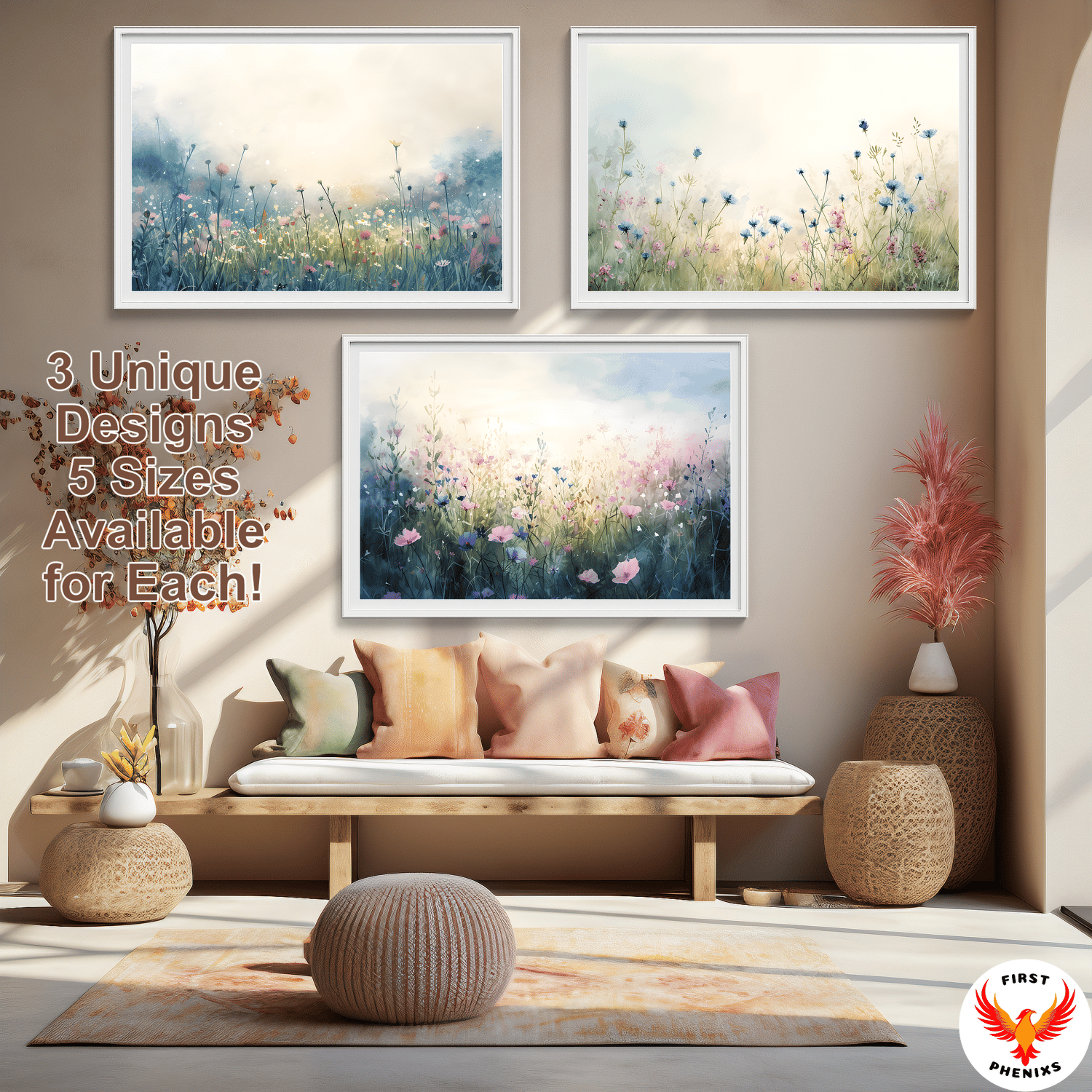 Serene Meadow Art 🌼 Watercolor Wall Decor Set Awaken Your Walls: Wildflower Dawn Art Series 🌄