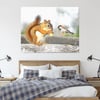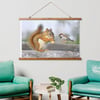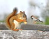 This is a photo I took of an American Red Squirrel, He was born in the spring of 2024. The father of this one is Mr. Bickles The Squirrel, and his mother is either Belinda or Tansy. He moved down the yard and I was feeding him close to a pasture for a while. In the late fall he came home and now lives in the same area as Katie and Mr. Bickles. This little person is called Kevin.
