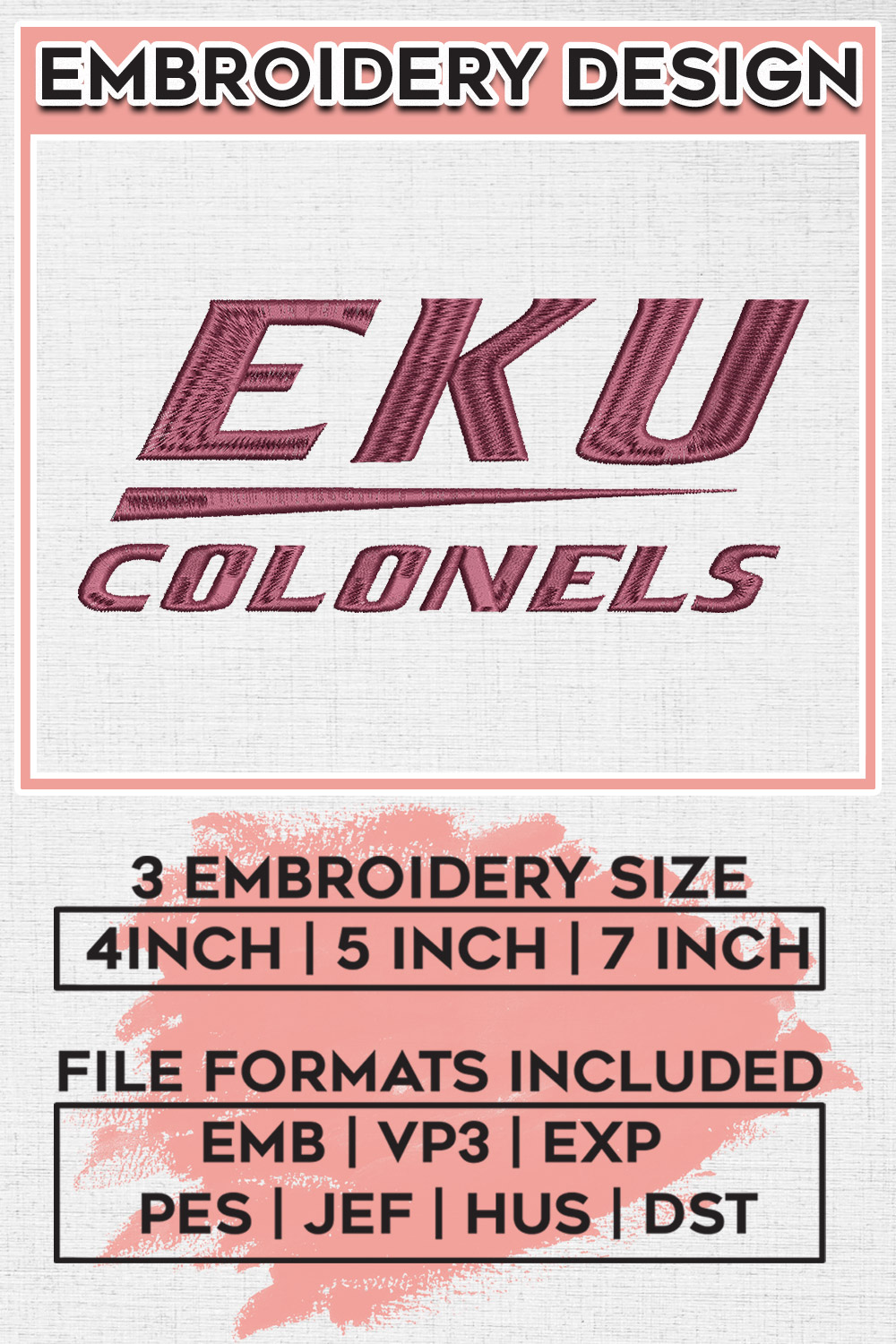 NCAA EKU Colonels Team Writng Logo Embroidery Designs, NCAA Eastern Kentucky Colonels Machine Embroidery Files, NCAA Logo embroidery designs, Ncaa Eastern Kentucky Logo, Digital Download