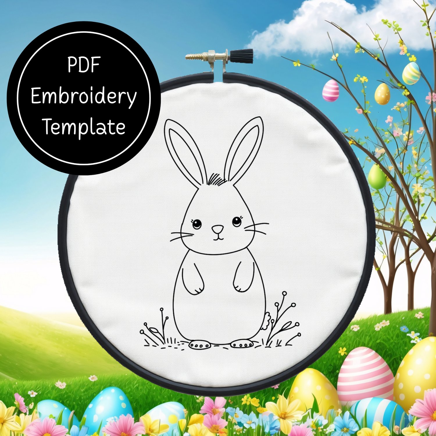 Cute Easter Bunny - Hand Embroidery Template - Instant Download