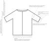 See schematic for approximate finished measurements. There is no shaping, however if you would like a bit of waist shaping and/or increase hip circumference, you may go up and down needles sizes as noted or increase from under-bust to the next size up.