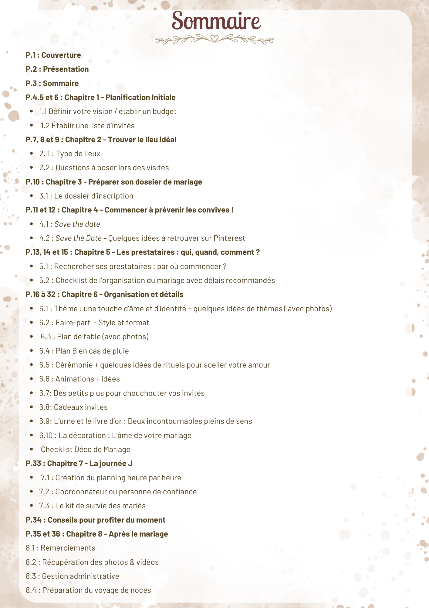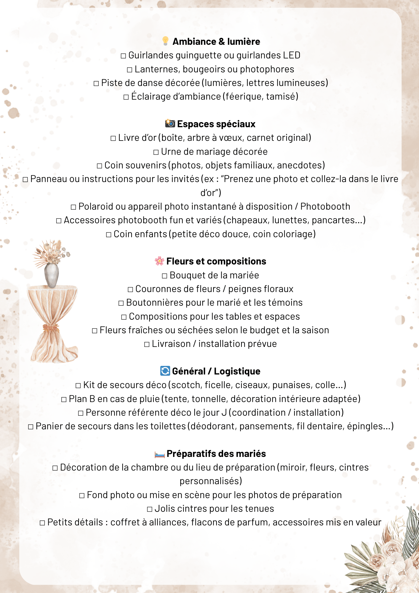 Un ebook clair, pratique et inspirant, basé sur mon propre mariage, pour t’aider à chaque étape de l’organisation.