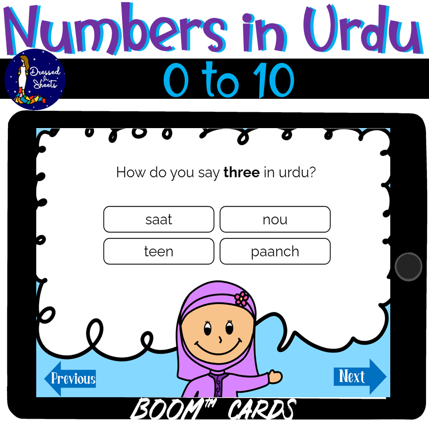 Let's learn to count in Urdu! Kiddos will read and trace the Urdu numbers from 0 to 20. The pages then count 20, 30, 40, 50, 60, 70, 80, 90, and 100. It includes various activities so students can practice writing out the numbers and remembering them. Includes a BOOM deck for review and quizzing as well.