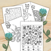 Þessi lita síðu pakki inniheldur 10 litasíður sem henta börnum sem og fullorðnum. Pakkinn inniheldur einnig 10 þrauta síður.