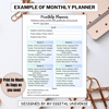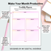 Introducing our printable, non-editable monthly planner, crafted to boost your productivity by managing your monthly goals and weekly tasks. This planner features dedicated sections for setting goals, breaking down weekly plans, and taking notes. Achieve your major objectives and keep a balanced lifestyle with this beautifully designed, user-friendly planner.