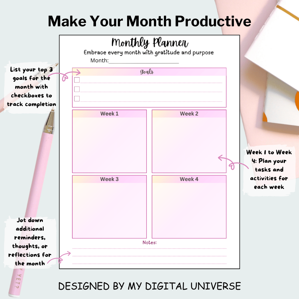 Hey there! If you’re looking for a monthly planner printable to help you set goals, stay organized, and plan your month efficiently, look no further! 😉