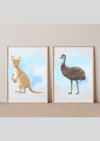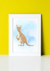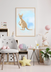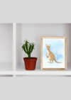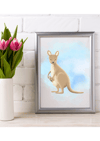 Adorable Digital Print of a Mother Kangaroo With Baby Kangaroo in her Pouch on a Baby Blue Background- Baby Joey Kangaroo-Prints for Living Room or Office Wall Art-Decorate your Nursery with a Wildlife Theme-Australian Kangaroo Images-Lovely Baby Gift