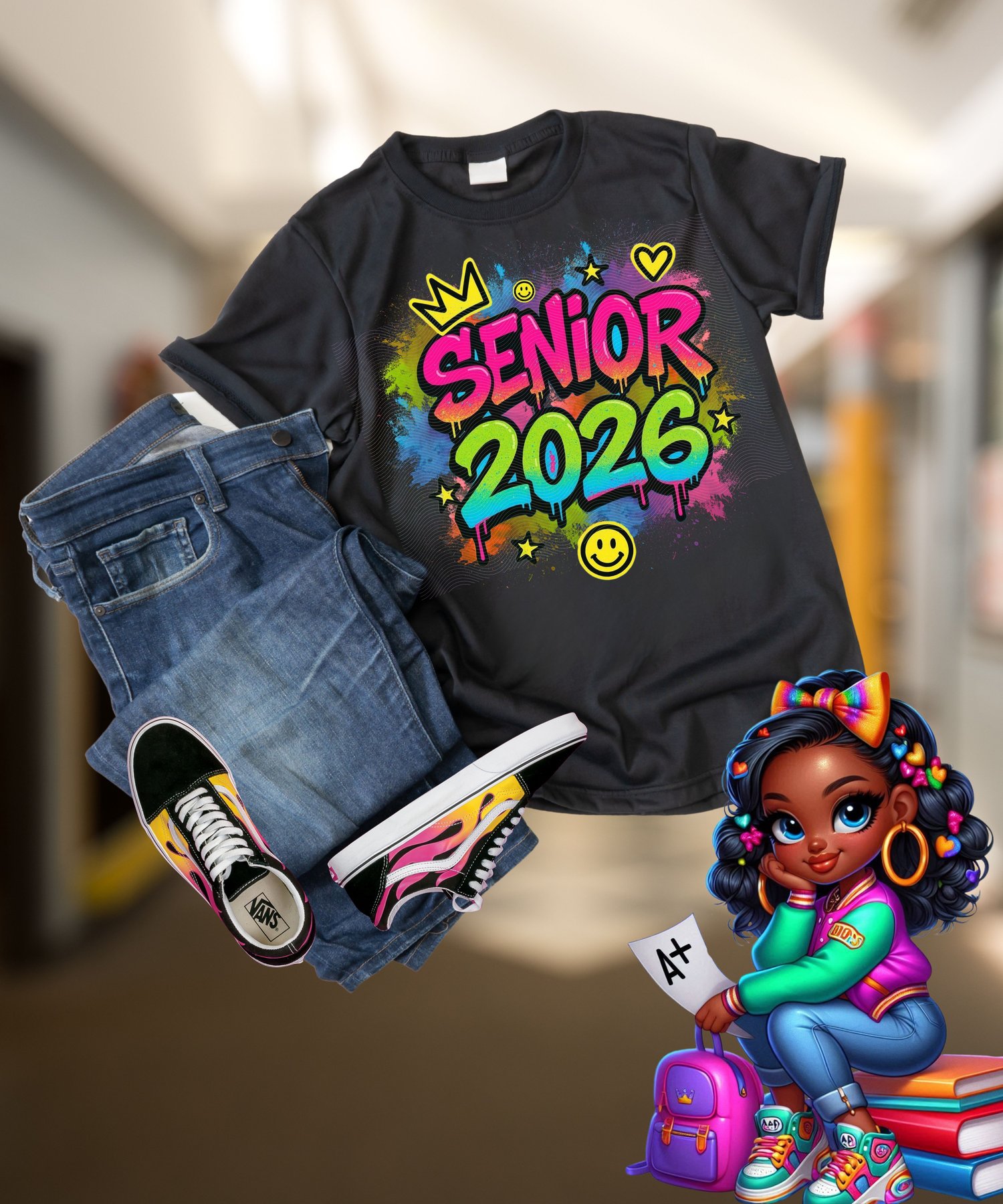Step into your senior era with this bold Senior 2026 PNG! Bright graffiti lettering, neon spray splatter, and fun doodles give you that last year energy that hits different. Whether you’re rocking it on a tee, hoodie, or tumbler, this design screams big senior vibes. Celebrate your senior year with a design that’s colorful, trendy, and unforgettable!