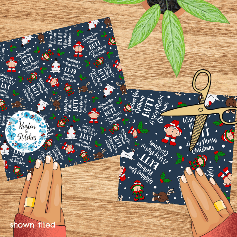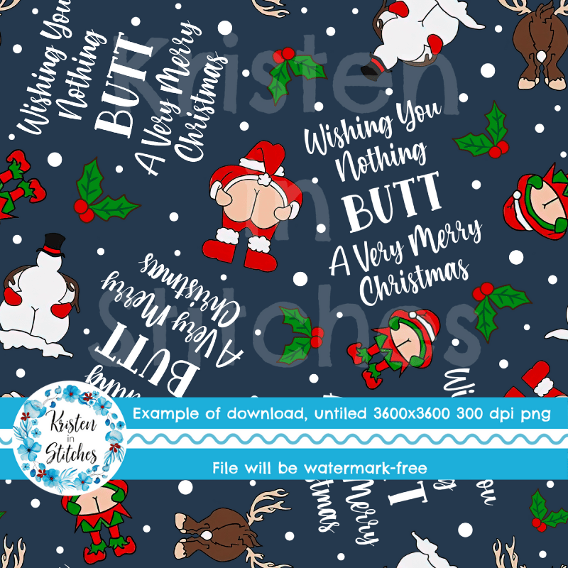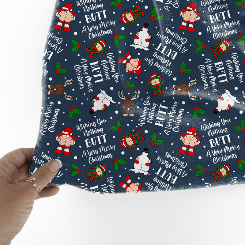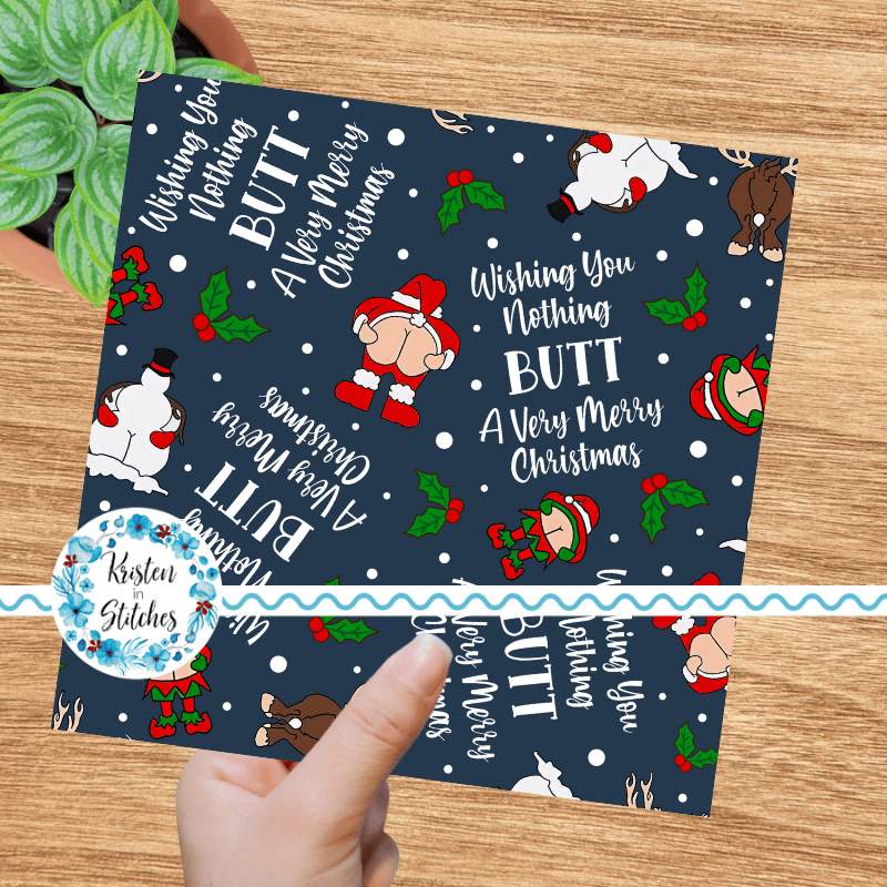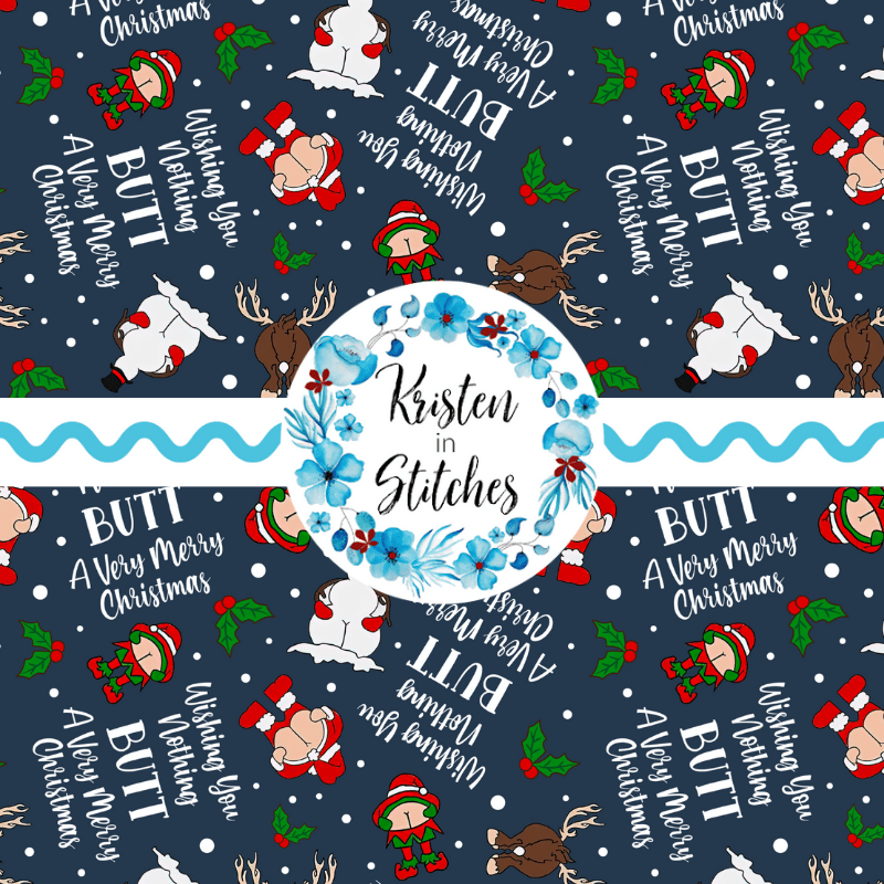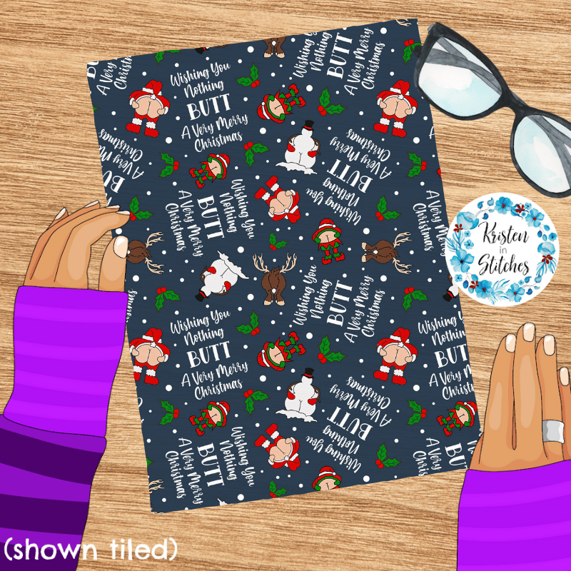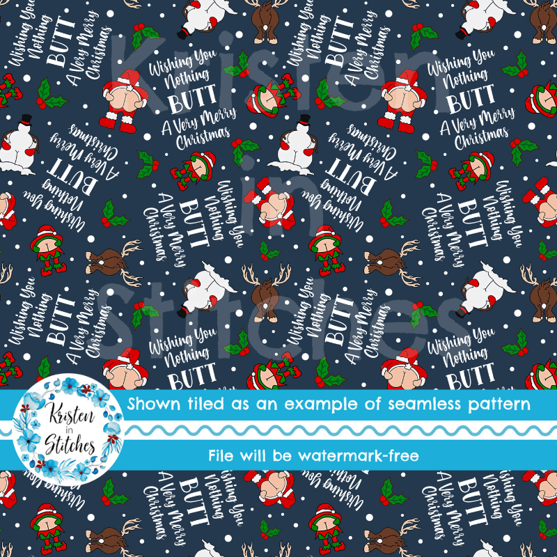 Wishing You Nothing Butt a Merry Christmas Seamless Pattern, Cheeky Santa, Navy