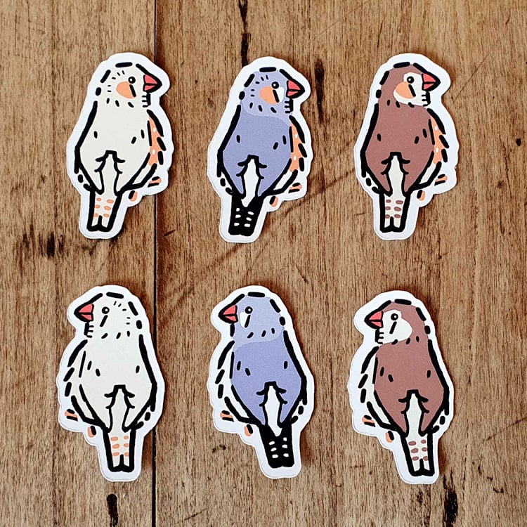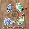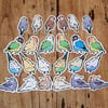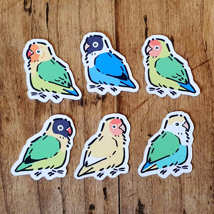 Each bundle of pet birds contains 6 different stickers of the same bird in different colours! Three birds face left and the other three to the right.