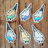 The stickers measure approximately 3 - 4 cm (1.2 - 1.6 inches) on their longest side depending on the design.