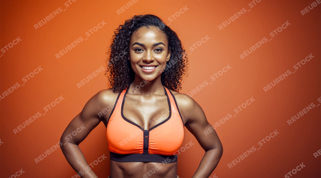 African American Woman in Sports Bra Posing against Orange Background. Fitness and Active Lifestyle Concept