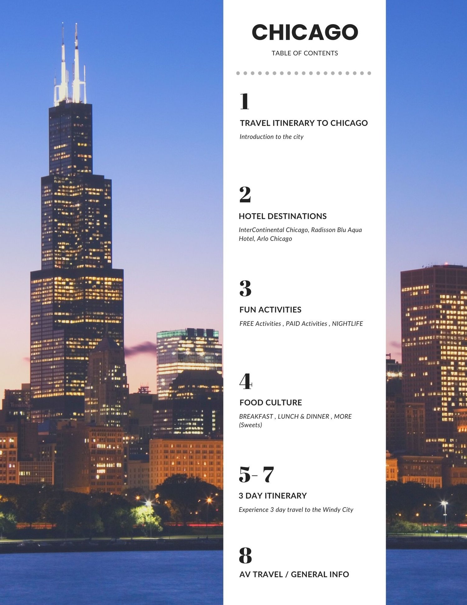 - Nightlife & Entertainment: Suggestions for great rooftops, famous jazz and blues clubs like Green Mill or Kingston Mines, and unique bars.
