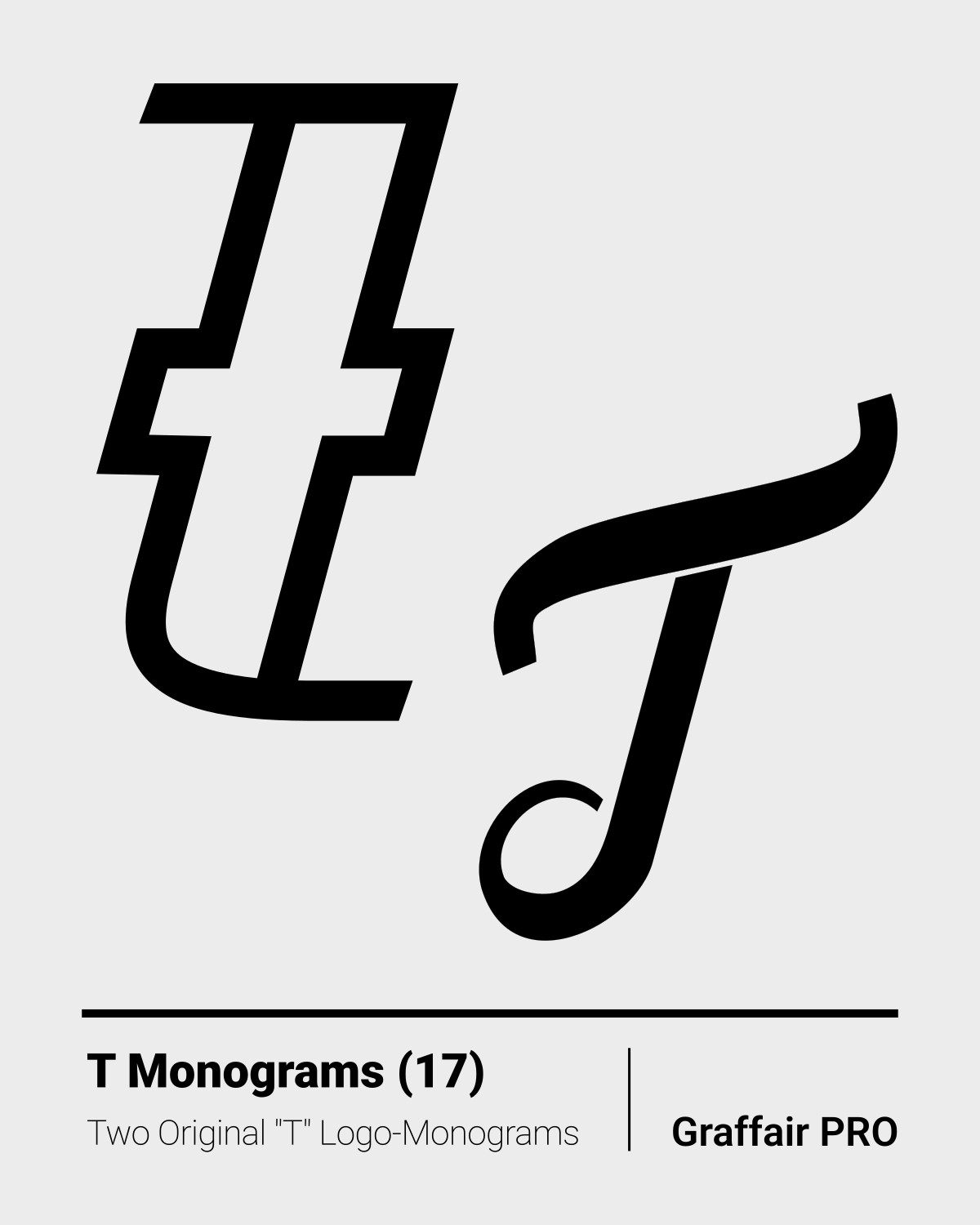 T Monograms (17): The 17th set of two original "T" logo monograms, included in the "1050 SVG Monograms" super bundle, which also features an Index catalog.