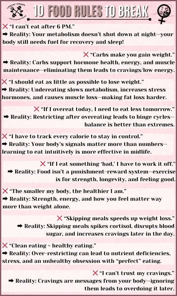 These so-called "rules" have been drilled into us for years, but they’re outdated, restrictive, and making midlife body changes harder—not easier. Instead of fighting against your body, try working with it.