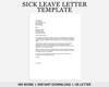 Sick Leave Letter Template, Medical Leave Letter, Leave of Absence Letter, Sick Leave Request Letter, Leave Application Letter, Sick Letter