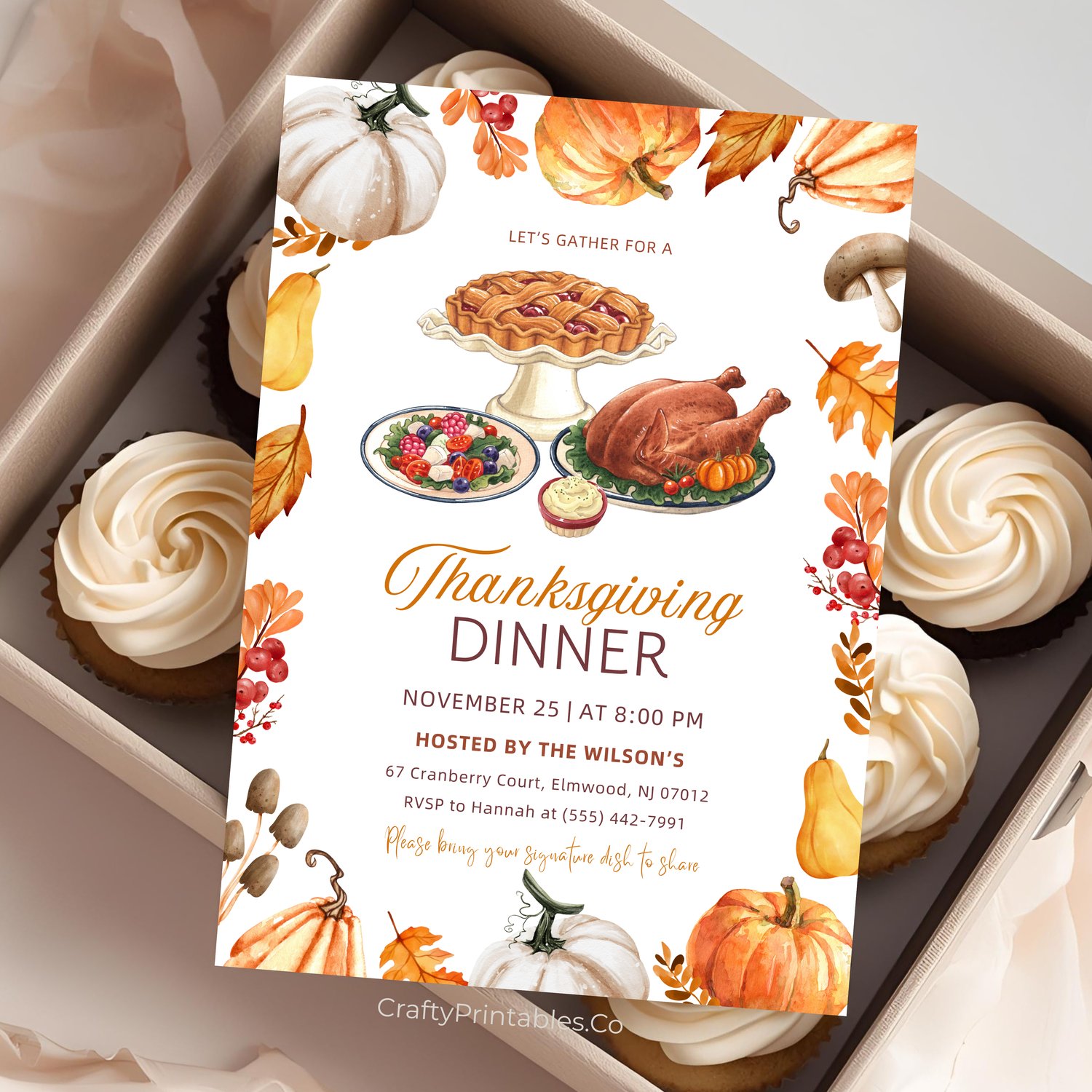 Create a warm and welcoming Friendsgiving or Thanksgiving dinner celebration with this editable invitation set. A beautiful, customizable design for hosts who want to celebrate gratitude, good food, and great company with style.
