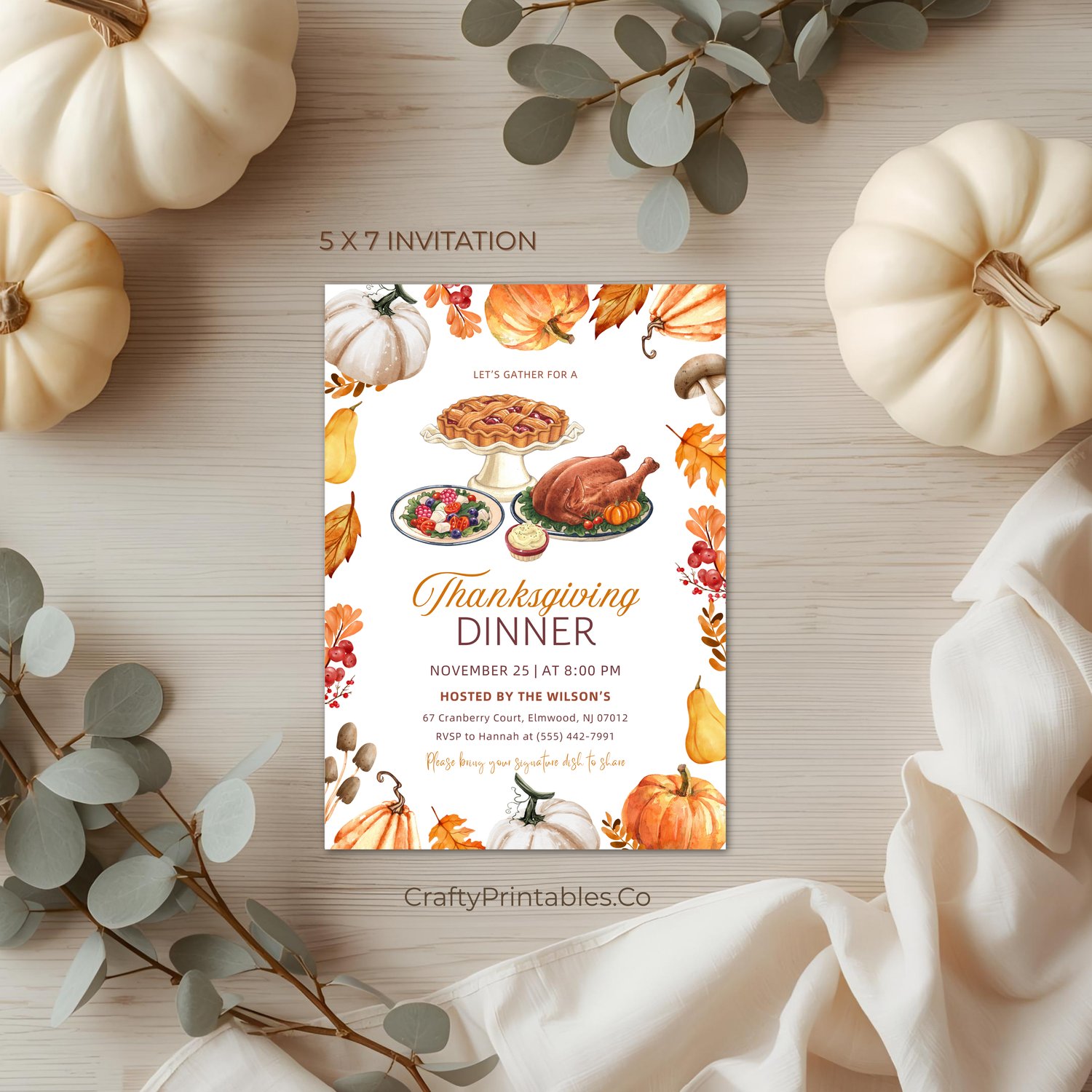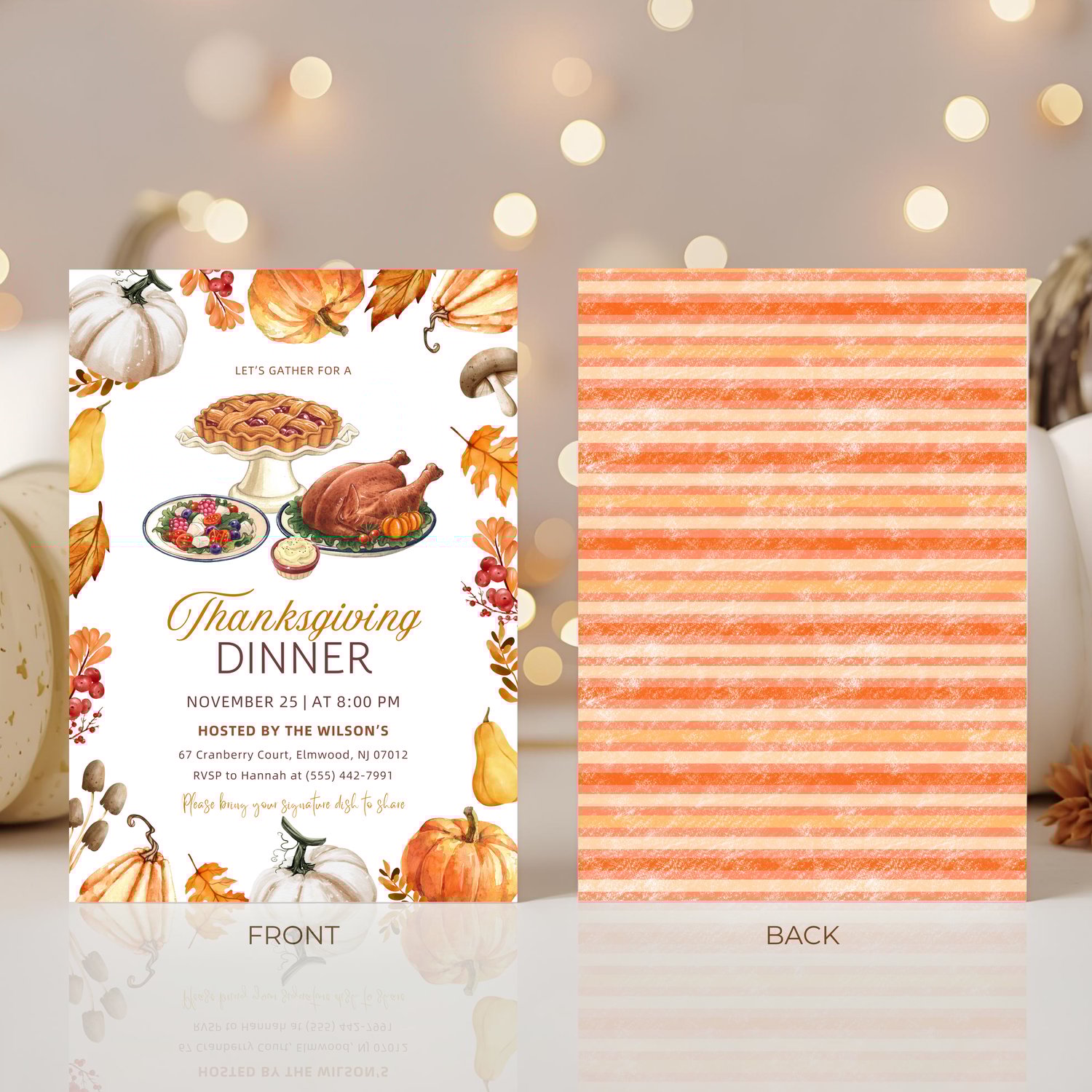 - Editable 5x7 Thanksgiving or Friendsgiving Dinner Invitation (front and back)