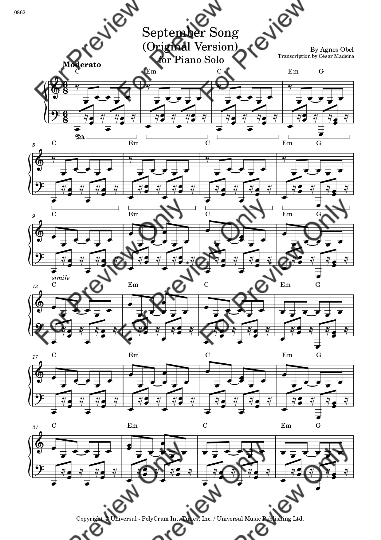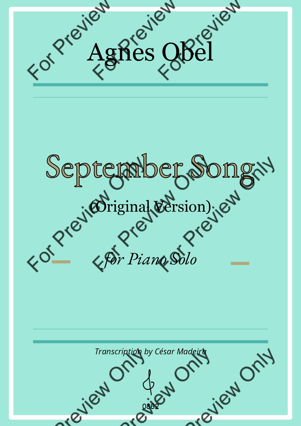 September Song by Agnes Obel. Arrangement for Piano Solo. With Full Score. Have fun!