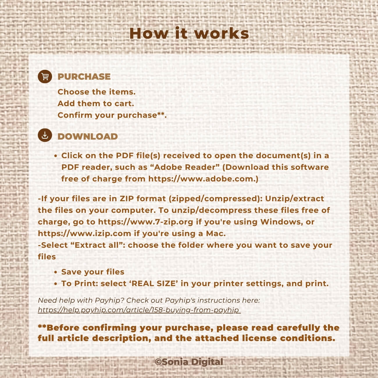 ▶️ Note: PDF ONLY, YOU Print. This is a DIGITAL PRODUCT and downloading is instantaneous. NO printed/physical product will be sent/shipped to you.