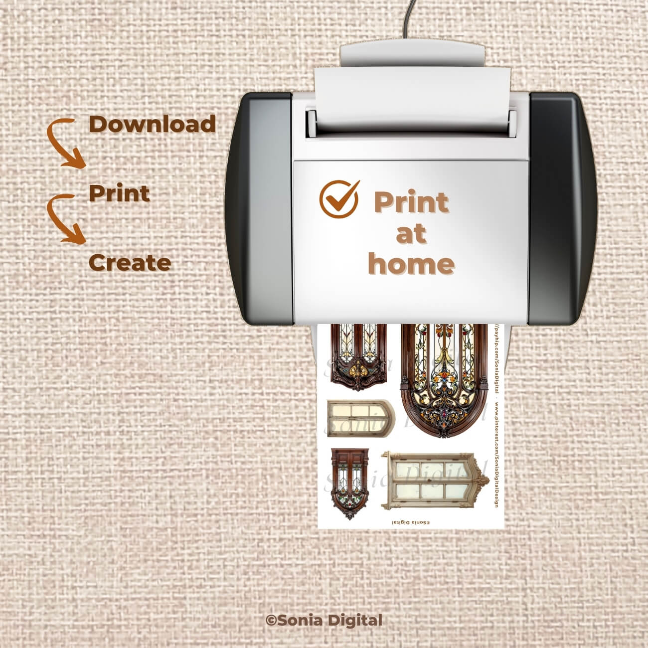 Perfect for DIY enthusiasts, this downloadable series features charming period windows motifs, ready to be printed, cut, and added to your artistic projects.